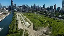 Much of the land was created through landfills in the 1920s as part of a $9 million realignment of the South Branch Chicago River.[1][9] The area then became a railyard for trains traveling to or from either the Grand Central station or LaSalle Street station.[10] The railyard was eventually demolished in the 1970s, forming a 62-acre vacant lot. The former railyard remained in limbo for decades. In 2001, Tony Rezko bought the entire land for mixed-use development. His plan did not come to fruition and eventually sold the land in 2005.[11]