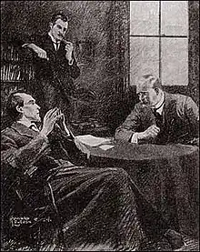 "The Adventure of the Three Garridebs" was published in the US in Collier's on 25 October 1924,[3] and in the UK in The Strand Magazine in January 1925.[4] The story was published with three illustrations by John Richard Flanagan in Collier's, and with five illustrations by Howard K. Elcock in the Strand.[5] It was included in the short story collection The Case-Book of Sherlock Holmes,[5] which was published in the UK and the US in June 1927.[6]
