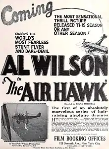 The Air Hawk is a 1924 American silent action adventure film directed by Bruce M. Mitchell and starring real life aviator Al Wilson.[1] The aviation film was produced and distributed by Universal Pictures.[2]