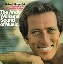 The Andy Williams Sound of Music is a double compilation album by American pop singer Andy Williams that was released early in 1969 by Columbia Records.[3][4] Although seven of the 21 tracks date back to his years with Cadence Records, where he racked up a half a dozen top 10 pop hits, the selections here are more in the vein of Standards or Easy Listening fare, as exemplified by the two charting singles included -- "On the Street Where You Live" and "Quiet Nights of Quiet Stars (Corcovado)".