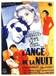 The Angel of the Night (French: L'ange de la nuit) is a 1944 French drama film directed by André Berthomieu and starring Jean-Louis Barrault, Michèle Alfa and Henri Vidal.[1]