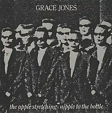 "The Apple Stretching" was written by Melvin Van Peebles for his 1982 play Waltz of the Stork.[1] The song describes New York City in the early morning. It was included on Jones' sixth album Living My Life and also released as a double A-side single with "Nipple to the Bottle", written by Jones and Sly Dunbar (which also got a separate single release in certain territories). The original 7-minute song's single edit was just the album version, faded out at 3:33. "The Apple Stretching" was simultaneously released as a 12" version, clocking in at 8:40. It included a second verse of the song, which had been omitted on the album version, where Jones sings together with a bass guitar only along with funky percussion. This version remains unreleased on CD.