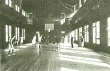 Angier B. Duke Gymnasium was constructed in 1898, funded by a donation from Benjamin N. Duke, who named it for his son, Angier.[3] The gym served as the host for the second college basketball game in the State of North Carolina on March 2, 1906, with Wake Forest defeating Trinity by a score of 2410. The playing surface measured just 50' x 32',[2] much smaller than a modern court, which measures 94' x 50'. After the basketball team moved, the building was used in varying capacities over the next several decades, including as a laundry facility, a recreation center, and a coffeehouse/nightclub, before settling into its current use as a dance studio.[4]