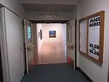 The Art Gym was founded in 1980 by Marylhurst University art faculty members Kay Slusarenko, Paul Sutinen, and Terri Hopkins, who together raised $1500 from a banquet and cookie sale, to open the 2,700 square foot gallery. Hopkins, in particular, lead the charge to curate the exhibits, and to raise the necessary funds for them. The university funds the space and basic infrastructure.[1] Since then, the gallery has occupied what was previously the campus gymnasium and theater on the third floor of the university's B.P. John Administrative Building. The Art Gym is dedicated to producing exhibitions and publications featuring artists of the Pacific Northwest.[2]