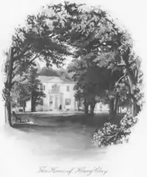 Using the profits of his forced-labor farming, Henry Clay used enslaved people to build his Federal style house in around 1806 (see Federal architecture). He had two wings added between 1811 and 1814, designed for him by Benjamin Latrobe. Inferior building materials, particularly a porous type of brick, resulted in an unstable structure. The building was likely damaged in the New Madrid earthquake and aftershocks of 1811–12. Clay's many repairs could never completely stabilize the house.[5]