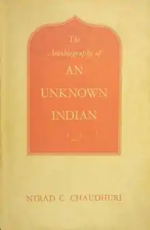 The Autobiography of an Unknown Indian is the 1951 autobiography of Indian writer Nirad C. Chaudhuri.[1][2] Written when he was around 50, it records his life from his birth in 1897 in Kishoreganj, a small town in present-day Bangladesh. The book relates his mental and intellectual development, his life and growth in Calcutta, his observations of vanishing landmarks, the connotation of this is dual—changing Indian situation and historical forces that was making exit of British from India an imminent affair.