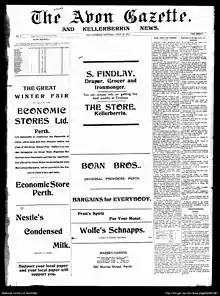 - ↑ "Encore -- The Avon gazette and Kellerberrin news [microform]". encore.slwa.wa.gov.au. Retrieved 19 July 2016.