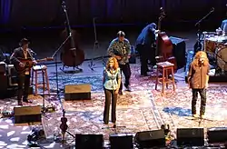 "The Battle of Evermore" was played live at Led Zeppelin concerts during the band's 1977 North American Tour. For these live performances, Jones sang Denny's vocals and played acoustic guitar whilst Page played mandolin. Sometimes John Bonham sang Denny's vocals along with Jones.[14] The British rock band Fairport Convention performed "The Battle of Evermore" with guest vocalists Plant and Kristina Donahue at Fairport's Cropredy Convention on 9 August 2008.[15] Plant and Alison Krauss regularly performed "The Battle of Evermore" on their tour of US and Europe in spring and summer 2008 in promotion of their 2007 collaboration album Raising Sand.[16]