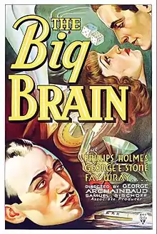 The Big Brain is a 1933 American pre-Code drama film directed by George Archainbaud and written by Sy Bartlett and Warren Duff. The film stars George E. Stone, Phillips Holmes, Fay Wray, Minna Gombell and Lilian Bond. The film was released on August 5, 1933, by RKO Pictures.[1][2][3]