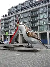 The Birds comprises a pair of outdoor sculptures depicting house sparrows by Myfanwy MacLeod, installed after the 2010 Winter Olympics in Southeast False Creek Olympic Plaza, which served as the site of the 2010 Olympic Village in Vancouver, British Columbia, Canada.[1][2] The work depicts one male and one female house sparrow, each approximately five metres tall, and was the first piece approved by the city's Olympic and Paralympic Public Art Program. It was inspired by Alfred Hitchcock's 1963 film of the same name, sustainability, the site's history as a shipyard, and immigration.
