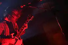 The group recorded their seventh studio album, El Camino, from March to May 2011.[60] Splitting time between touring and recording, the band spent 41 days at Easy Eye Sound Studio, which was opened in 2010 by Auerbach in the duo's new hometown of Nashville, Tennessee.[3] For the album, Danger Mouse reprised his role as producer and also contributed as a co-writer on all 11 songs.[60] After struggling to translate the slower songs from Brothers to a live setting, the band decided to write more uptempo tracks for El Camino.[59] The record draws from popular genres from the 1950s–1970s,[76] including rock and roll,[76][77] glam rock,[78] rockabilly,[78] surf rock,[78] and soul.[79] The band cited several retro acts as musical influences on the album, including the Clash, the Cramps, T. Rex, Ramones, the Beatles, the Sweet, the Cars, and Johnny Burnette.[3][59][60]