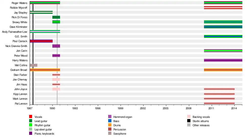- Jon Carin – keyboards, lap steel guitar, programming, high-strung guitar on "Comfortably Numb", acoustic guitar on "Outside The Wall", electric guitar on "Run Like Hell", "Bring The Boys Back Home", "Comfortably Numb" and "Brick 3"
