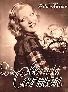 The Blonde Carmen (German: Die blonde Carmen) is a 1935 German musical comedy film directed by Victor Janson and starring Mártha Eggerth, Wolfgang Liebeneiner, and Ida Wüst.[1] It is part of the tradition of operetta films. It was shot at the Johannisthal Studios in Berlin. The film's sets were designed by the art directors Wilhelm Depenau and Erich Zander. It was distributed by Rota-Film, a subsidiary of the large Tobis Film concern.
