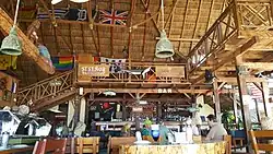 In her 2020 Moon guide for Puerto Vallarta, Madeline Milne describes The Blue Shrimp as a "sophisticated palapa-style restaurant with beautiful natural decor".[1] The interior features "relics of ancient ships" and walls resembling reefs. Aquariums and blue lights also contribute to the nautical theme. The bathrooms are shaped like shells. In addition to shrimp, the menu features fish (including mahi mahi and tuna) and a salad bar.[2]