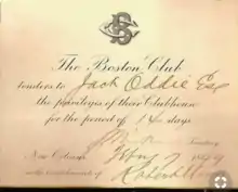 - ↑ Officers, Members, Charter, and Rules of the Boston Club of New Orleans. Pub. by the Boston Club. 1919. pp.40