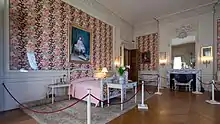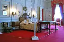 - Guest bedroom – This room exemplifies the Louis XVI style through furniture, woodwork and light fixtures, with Neoclassical style abounding in the interior. The wall paneling has never been retouched, though the rest of the room has been restored by the preservation society.