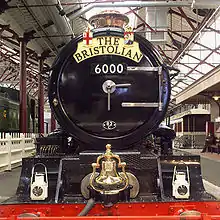 Three different headboard designs were used.[3] Under the GWR there was no headboard, although the three-digit GWR train reporting number was carried: 016, 116 (down trains from London), 470, 473 (up trains from Bristol). When the first post-war BR Bristolian was reintroduced in 1951 there was still no headboard.