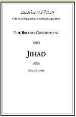 The British Government and Jihad (Urdu:Government Angrezi Aur Jihad) is a book written in 1900 by Mirza Ghulam Ahmad, the founder of the Ahmadiyya movement in Islam. An alternative title is the True Meaning of Jihad. It was published on 22 May 1900[1][2] and was translated into English in 2006, by Islam International Publications.[3]