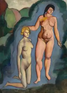 The Bush is a painting by Marcel Duchamp from 1910-1911. It is in the collection of the Philadelphia Museum of Art, that acquired it through The Louise and Walter Arensberg Collection in 1950. Its first owner was Dr. Raymond Dumouchel, himself the subject of another 1910 painting by Duchamp, Portrait of Dr. Dumouchel.[1] One of the models may be Jeanne Serre, with whom Duchamp had a relationship and fathered a child, Yvonne,[2] who later became known as Yo Savy. Duchamp noted that the painting marks the beginning of a practice of attaching non-descriptive titles to his work: "Introduce some anecdote without being 'anecdotal'"; the painting did not illustrate a definite theme, but the title created "the possibility to invent a theme for it, afterwards."[2][3]