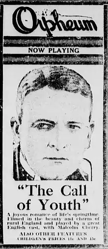 The Call of Youth is a 1921 British short romance film directed by Hugh Ford. Alfred Hitchcock is credited as a title designer.[1] The film is now lost. It was made at Islington Studios by the British subsidiary of the American company Famous Players–Lasky.