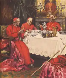 The Cardinals' Collation (Portuguese: A Ceia dos Cardeais[lower-alpha 1]) is one-act play by Portuguese playwright Júlio Dantas, premiered on 24 March 1902. Originally written in Alexandrine couplets, it mostly comprises three monologues by three cardinals — one Portuguese, one French, and one Spanish — who are reminiscing about their first loves over a supper of pheasant with truffles in a richly-appointed Vatican room.[1]