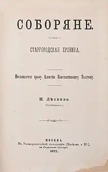 The Cathedral Folk (Russian: Соборяне, romanized: Soboryane), also translated as The Cathedral Clergy, is a novel by Nikolai Leskov, a series of "romantic chronicles" (as the author called them) of the fictional town of Stargorod. It is his only full-length novel translated into English. It was first published in 1872 in The Russian Messenger magazine[1] and formed a trilogy with Old Years in Plodomasovo (1869) and A Decayed Family (1874).[2]