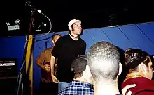 Morning Again was formed in November 1995, by guitarist and principle songwriter John Wylie and drummer Louie Long.[11][5][12] The pair had previously played together in the metallic hardcore bands Culture and Organized Pain.[13][7][12] After practicing with vocalist César Morales for about a month, they recruited new vocalist Damien Moyal, who had also previously played in Culture with Wylie, and Reach (another metallic hardcore band) with Long,[14] and was then a member of the melodic metalcore band Shai Hulud.[5][15] Although Moyal and Wylie had suffered conflicts of interest in Culture nine months prior (which had led to Moyal's departure shortly before a tour and hasty replacement by Long), the two hoped to reconcile their differences, which in turn inspired the lyrics to Moyal's first Morning Again song, "Turning Over".[5][7] In December 1995, the band was completed with the addition of second guitarist Michael Wolz (formerly of Uplipht and After All) and bass guitarist Eric Ervin (formerly of Discount).[16]