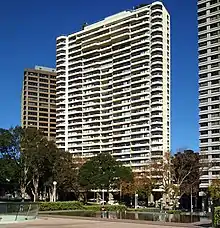 The site where The Connaught stands today was originally the site of the Paris Theatre designed by architect Walter Burley Griffin, and demolished in 1981. The thirty-storey Connaught was completed in 1984 by Civil & Civic,[1] builders of the Sydney Opera House, and was named in honour of the Duke of Connaught, Prince Arthur, third son of Queen Victoria and former Governor-General of Canada.