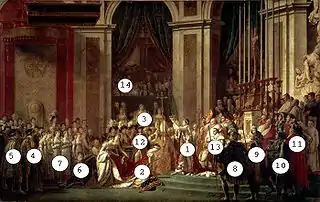 - ↑ The full official title is Consecration of the Emperor Napoleon I and Coronation of the Empress Josephine in the Cathedral of Notre-Dame de Paris on 2 December 1804.