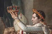 The Coronation of Napoleon[lower-alpha 1] (French: Le Sacre de Napoléon) is a painting completed in 1807 by Jacques-Louis David, the official painter of Napoleon, depicting the coronation of Napoleon at Notre-Dame de Paris. The oil painting has imposing dimensions – it is almost 10 metres (33 ft) wide by a little over 6 metres (20 ft) tall. The work is on display at the Louvre Museum in Paris.
