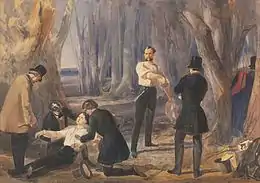 ![]() Painting by Edward Henry Corbould depicting a scene from The Corsican Brothers in an 1852 London adaptation | |