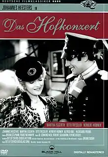 The Court Concert (German: Das Hofkonzert) is a 1936 German historical romantic comedy film directed by Detlef Sierck (later known as Douglas Sirk), and starring Mártha Eggerth, Johannes Heesters, and Kurt Meisel.[1] It was made by the largest German studio UFA, based on Das kleine Hofkonzert. It is part of a group of operetta films made during the 1930s. The film was made at the Babelsberg Studios in Berlin with sets designed by the art director Fritz Maurischat. A separate French-language version was also made.