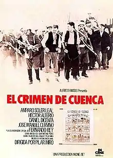 The Crime of Cuenca (Spanish: El crimen de Cuenca) is a 1980 Spanish drama film directed by Pilar Miró and based on an instance of miscarriage of justice, the Crime of Cuenca, which took place in the early 20th century in the province of Cuenca. El crimen de Cuenca is the title of a book published at the same time by the author of the movie script, (Lola) Salvador Maldonado, in which she recounts the same facts.