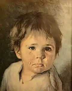 There are numerous alternative versions, all portraits of tearful young boys or girls.[1] In addition to being widely known, certain urban legends attribute a 'curse' to the painting.
