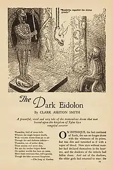 "The Dark Eidolon" is a sword and sorcery short story by American writer Clark Ashton Smith, forming part of his Zothique cycle of stories. It was first published in Weird Tales in 1935 and has been variously republished, notably in the anthology The Spell of Seven, edited by L. Sprague de Camp.
