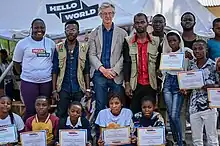 The Day's founder, Richard Addis, with winners of the Global Young Journalist award.