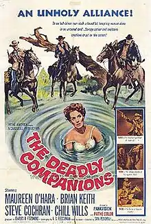 The Deadly Companions is a 1961 American Western and war film directed by Sam Peckinpah and starring Maureen O'Hara, Brian Keith, Steve Cochran, and Chill Wills. Based on the novel of the same name by A. S. Fleischman, the film is about an ex-army soldier who accidentally kills a woman's son, and tries to make up for it by escorting the funeral procession through dangerous Indian territory.[2] The Deadly Companions was Sam Peckinpah's motion picture directorial debut.[3]