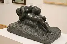 As Rodin's fame grew during the 1880s, the demand for his work increased, so many of his works, which were originally created in a smaller format, began to come out of his studio, which had already grown considerably. Some of these pieces were finished compositions, based on the coupling of figures originally conceived individually; this work is an example of such a composition.[2]
