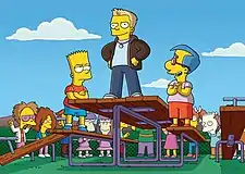 ![]() The episode's promotional image featuring Bart, Donny (Topher Grace) and Milhouse. | |