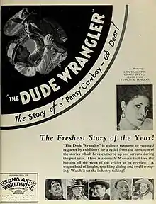 The Dude Wrangler is a 1930 American pre-Code comedy Western film directed by Richard Thorpe and starring Lina Basquette, Tom Keene and Clyde Cook.[1]