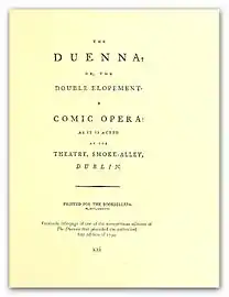 The Duenna is a three-act comic opera, mostly composed by Thomas Linley the elder and his son, Thomas Linley the younger, to an English-language libretto by Richard Brinsley Sheridan. At the time, it was considered one of the most successful operas ever staged in England,[1] and its admirers included Samuel Johnson, William Hazlitt and George Byron (the latter called it "the best opera ever written"[2]).