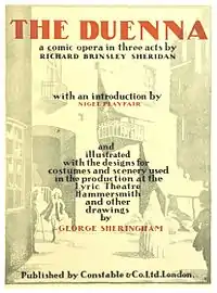 - ↑ The Duenna, a comic opera in three acts by Richard Brinsley Sheridan, with an introduction by Nigel Playfair, and illustrated with the designs for costumes and scenery used in the production at the Lyric Theatre Hammersmith and other drawings by George Sheringham (Constable & Co. Ltd., London 1925).