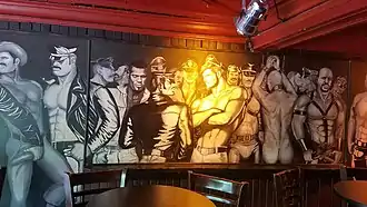 The first gay bar to operate under the name "The Eagle" was The Eagle's Nest (now named Eagle NYC), located in New York City.[1] The bar originally operated as a longshoreman's tavern that opened in 1931 under the name Eagle Open Kitchen.[2] Prompted by the Stonewall riots in 1969 and subsequent growth of the city's gay culture, the tavern's owners converted the establishment into a gay bar in 1970.[1] The Eagle's Nest became a popular gathering point for the city's gay leather subculture, biker groups, and sports clubs, and subsequently inspired the creation of similarly named gay bars across the United States and internationally.[1]
