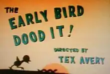 The Early Bird Dood It! is a 1942 MGM cartoon directed by Tex Avery and produced by Fred Quimby.[2] The composer of this cartoon was Scott Bradley.