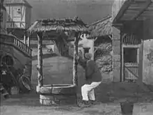 The Enchanted Well was made in 1903, just as Méliès was reaching the high point of his career as a creator of fantasy films.[1] Méliès himself appears in the film as the farmer with the donkey.[3] The dragon puppet would be reused in Méliès's later films The Witch (1906) and Baron Munchausen's Dream (1911). The film's other special effects were created using stage machinery, pyrotechnics, substitution splices, and photographic dissolves on a black background.[3] Méliès also drew freely on the gymnastic abilities of his actors, with much of the film enlivened by comedic acrobatics.[2]