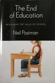 The End of Education[1] is a book by Neil Postman about public education in the United States. The use of the word "end" in the title has two meanings: primarily, as a synonym for "purpose", but also as a prediction about the future of public schools if they do not successfully identify and communicate a convincing purpose for their existence within human culture.