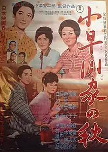 The End of Summer (小早川家の秋, Kohayagawa-ke no aki, lit. "Autumn of the Kohayagawa family") is a 1961 Japanese film directed by Yasujirō Ozu for Toho Films.[1] It was entered into the 12th Berlin International Film Festival.[2] The film was his penultimate; only An Autumn Afternoon (1962) followed it, which he made for Shochiku Films.