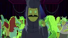 At a hotel after-party, Bronconius shows Bob a safe where the Chariot doll is kept, and tells Bob his intent to achieve immortality by "merging mouths" with the doll. Bob openly recalls a zombie character from Tina's fan fiction as if that were canon, exposing him to Bronconius as a pretender to the fandom. Bob's family arrives to rescue Bob as Bronconius prepares to give Bob a large tattoo on his back in the shape of a horse with his own face on its posterior. Bronconius sets the other Equesticles on the family, but Tina turns them against him by arguing that he is using their core value of acceptance to achieve his own ends. As Bronconius gloats that they still won't be able to recover the doll, Bob then abruptly calls the front desk to open the safe. However, Tina decides she has outgrown the doll and packs it away, thanking Bob for retrieving it anyway. Angered that his whole fandom ordeal (which resulted in a small, nondescript, unfinished tattoo which remains for the rest of the series) may have been for nothing, Bob orders Tina to play with the doll before she goes to bed.