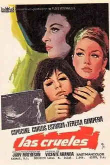 The Exquisite Cadaver (Spanish: Las crueles) AKA: The Cruel Ones is a 1969 Spanish film noir psychological thriller film directed by Vicente Aranda, based on the short story Bailando Para Parker written by Gonzalo Suárez.[1] The plot follows a well-to-do publisher and family man who begins to receive severed body parts in the mail two years after his mistress committed suicide. Along with one of these bloody parcels is a letter of blackmail from the dead woman's former lesbian lover, who seeks vengeance.