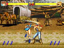 In single player mode, after selecting a character, the player must also select an opponent. The opponent order cycles randomly according to the character select screen. After the first twelve are defeated, the player must defeat two bosses, Powell and Mahesvara. Unlike Fight Fever, there is a 2-on-2 team mode, where players can choose two characters whether in certain order or randomly. The camera also zooms in and out depending on how far apart the characters are, like in the Art of Fighting series.